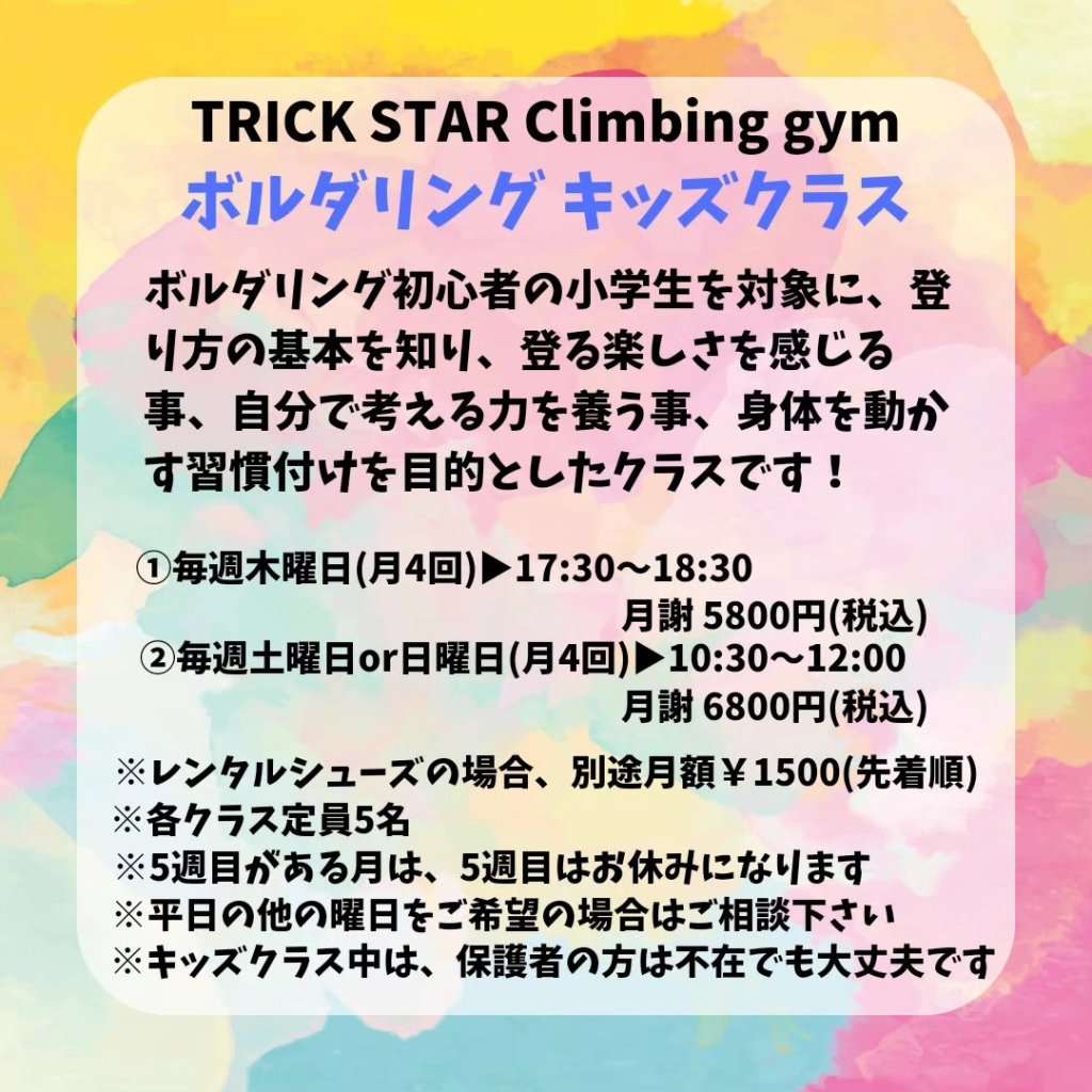 ⭐️トリスタボルダリングキッズクラス⭐️