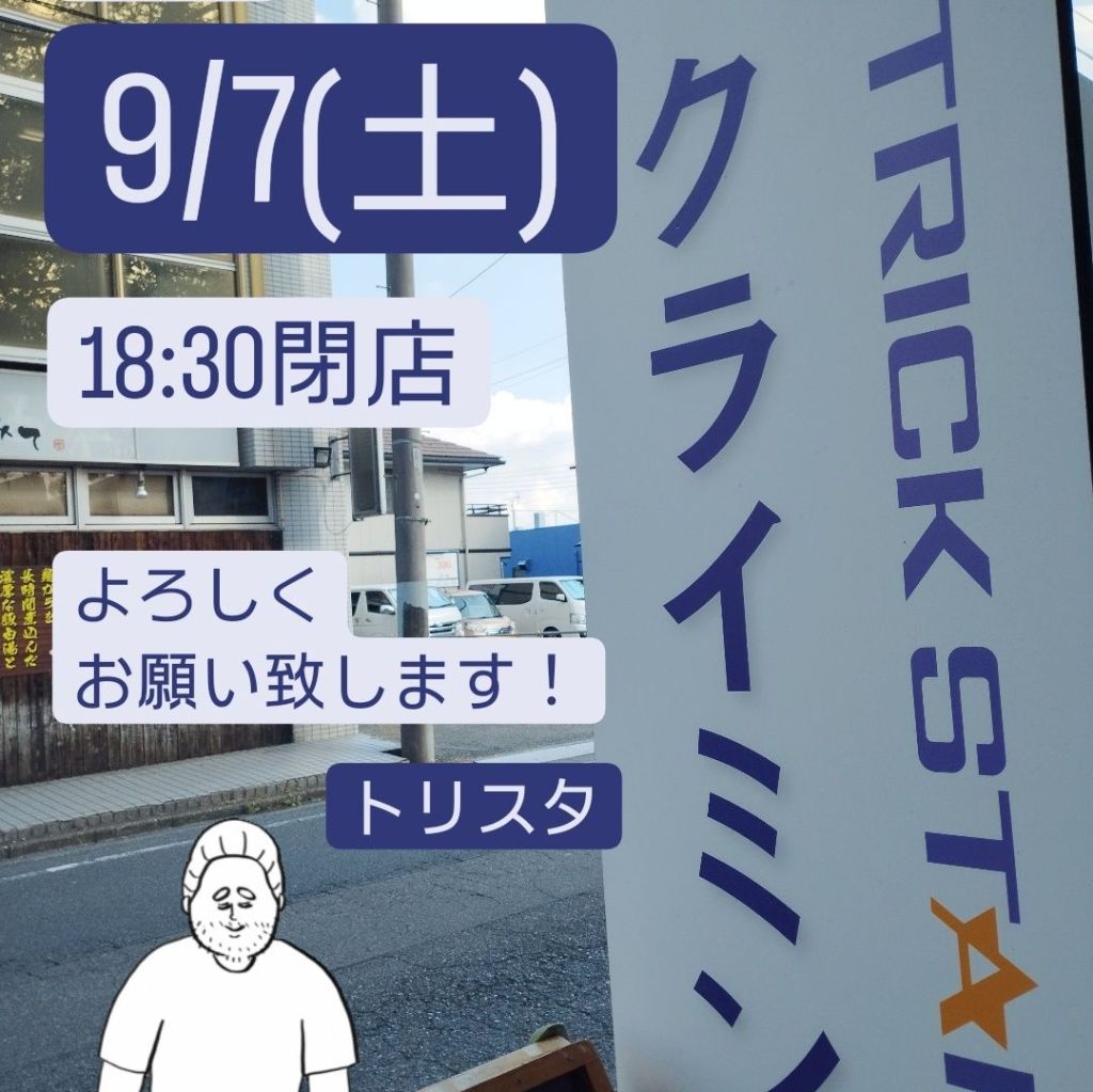 明日9/7(土)の営業時間ですが、